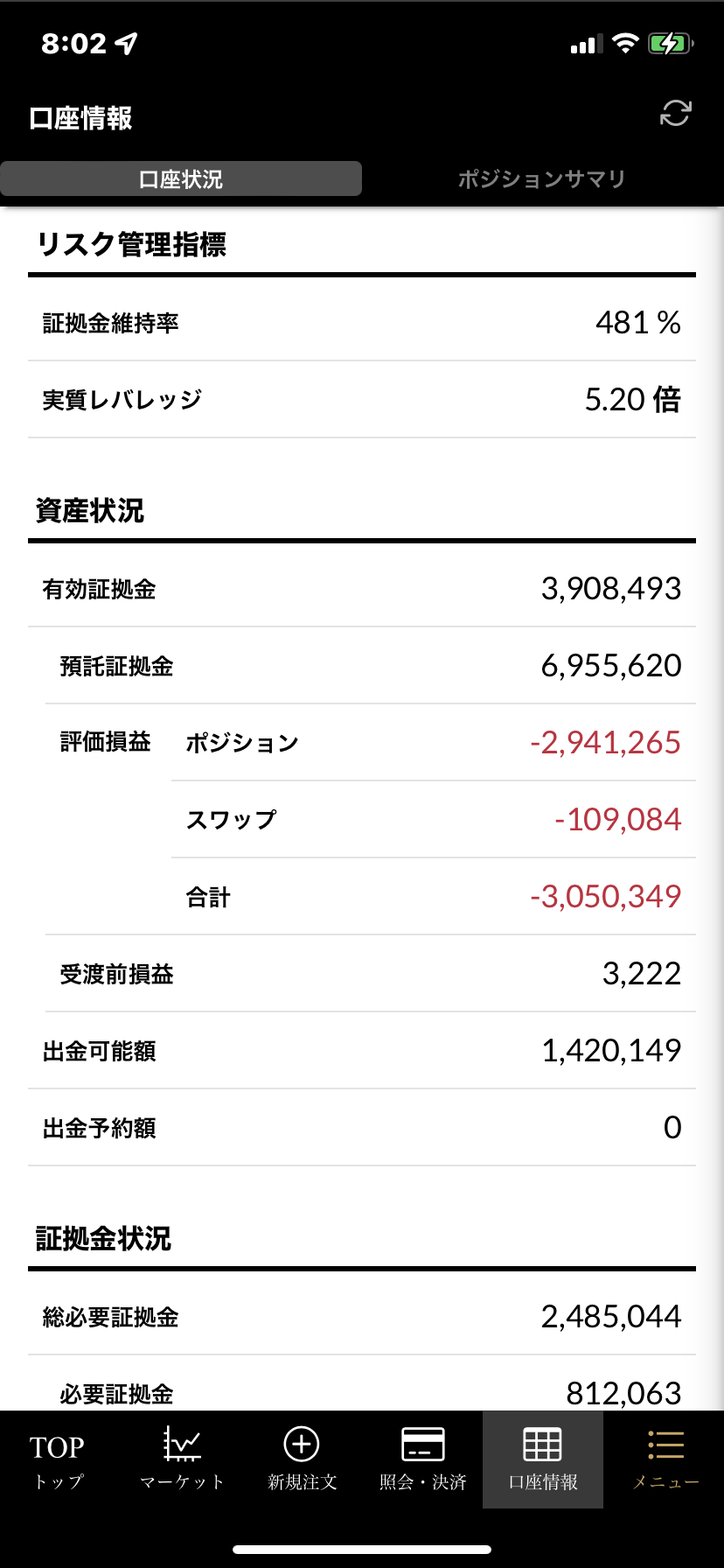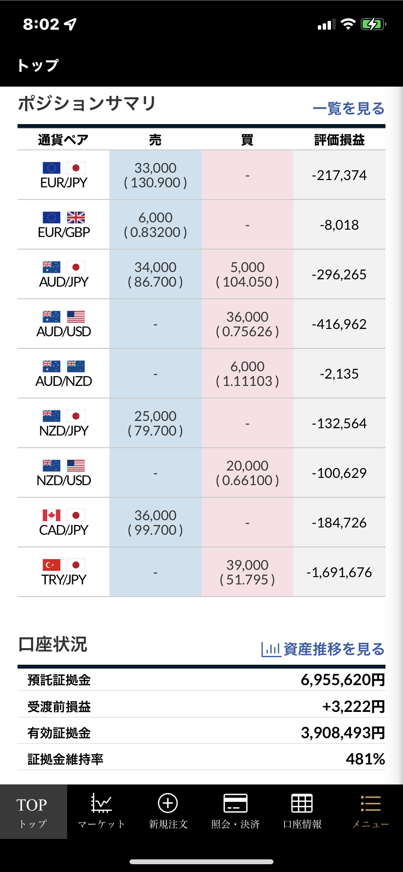 上記が、2021年3月1日での保有ポジションと含み損となります。