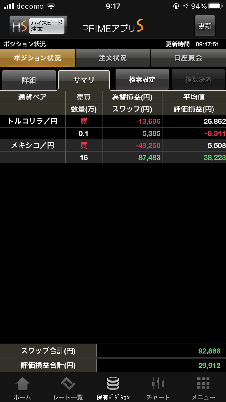 ペソのスワップポイントが高いのがわかり、途中からペソに切り替えました。