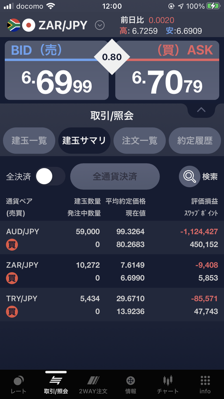 | ZAR/JPY | 10,272通貨 | 71円 | 5,853円 |