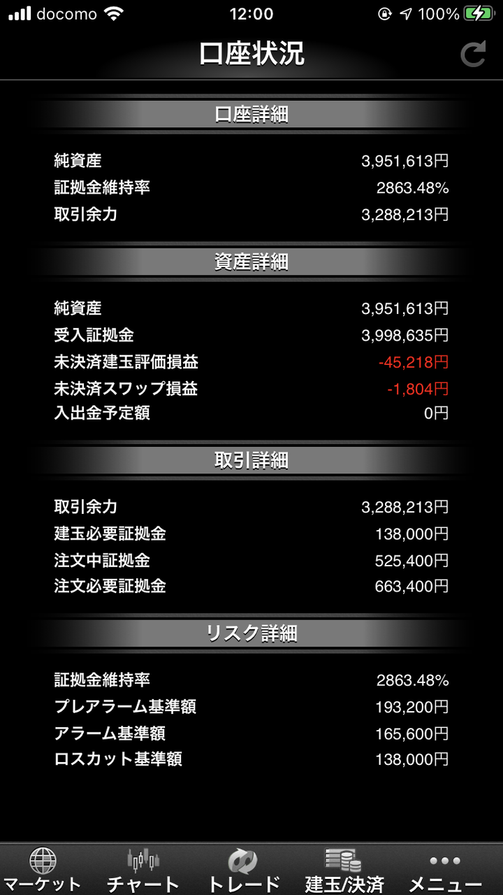 同時に全ての通貨が設定の下限まで来た時の含み損の約430万円です。