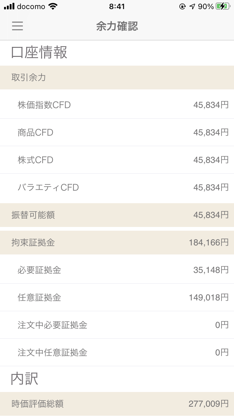 岡三オンライン証券365の方が証拠金が低いため、移動しました。
